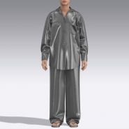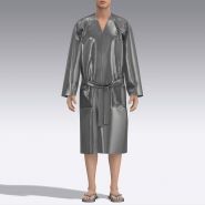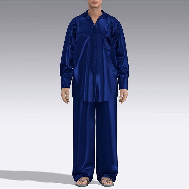 Мужская пижама из натурального шелка. Рубашка длиной до середины бедер с застежкой на потайные кнопки, с одним нагрудным карманом, сзади на кокетке. Отложной воротник. Рукава длинные, на манжетах. Брюки длинные, без карманов, на резинке. Чистая обработка швов. Широкий размерный ряд.