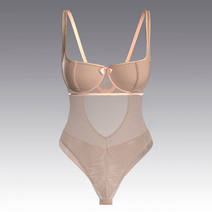 Базовое боди-балконет из сетки, бежевый 2821.35