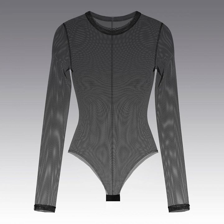 Боди из сетки с длинным рукавом очень хорошо подойдет для праздничного случая. Ластовица из хлопка, застегивается на крючки и петли. Комфортные ощущения при носке сохраняются благодаря ластовице, застегивающейся на крючки и петли. Сзади - форма бразилиано.
