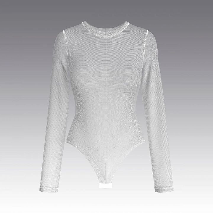 Боди из сетки с длинным рукавом очень хорошо подойдет для праздничного случая. Ластовица из хлопка, застегивается на крючки и петли. Комфортные ощущения при носке сохраняются благодаря ластовице, застегивающейся на крючки и петли. Сзади - форма бразилиано.