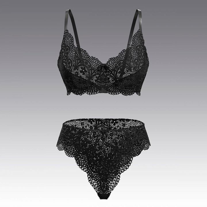 Комплект - бюстгальтер и высокие трусики-бразилиано из кружева. Бюстгальтер с мягкой чашкой. Ажурные чашки для лучшей поддержки груди в нижней части имеют вставку на тонком поролоне, как и во всех моделях ARDI, дублированную высококачественным хлопком. Передняя деталь из кружева, с маленьким бантиком. Высокие углы чашек переходят в ажурные, регулирующиеся, несъемные бретели с регуляторами. Ширина бретели 15 мм (в больших размерах - 20 мм.). Боковые детали из кружева. Сзади – застежка на 2 крючка (в больших размераз - на 3 крючка). В комплекте идут трусы-бразилиано с высокой посадкой, выполненые из кружева. Благодаря отсутствию резинок по ножкам, не пролегают под облегающей одеждой. Комфортные и незаментые в носке. Ластовица из хлопка. Размеры трусов европейские. Широкий размерный ряд.