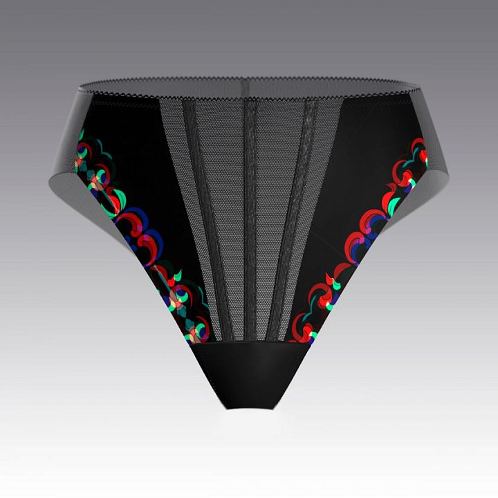 Трусы-бразилиано из капсульной коллекции ARDIxDali в рамках коллаборации с фондом "Искусство наций" с высокой посадкой выполнены из микрофибры с авторским принтом и сетки. Комфортные и незаментые в носке. Ластовица из хлопка. Размеры трусов европейские, широкий размерный ряд.