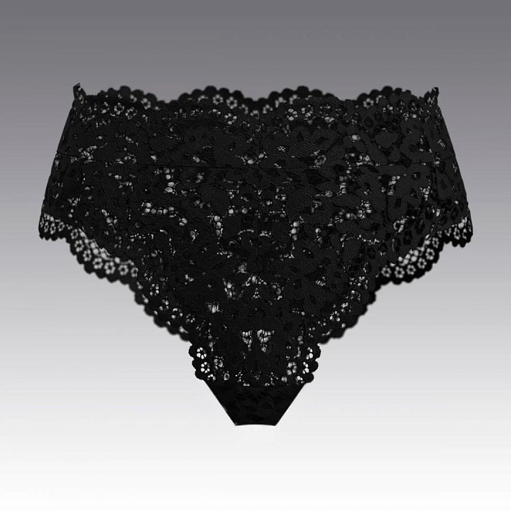 Трусы-бразилиано с высокой посадкой полностью выполнены из ажурного кружева. Благодаря отсутствию резинок сзади по ножкам, не пролегают под облегающей одеждой.  Комфортные и незаментые в носке. Ластовица из хлопка. Размеры трусов европейские. Широкий размерный ряд.
