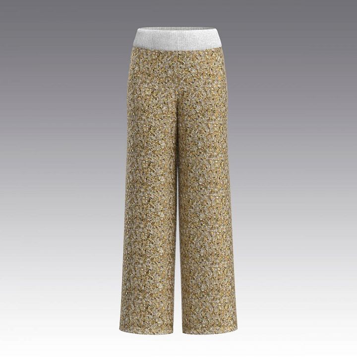 Длинные брюки прямого покроя с пайетками. Изделие на подкладке. По талии - широкий пояс из кашкорсе на резинке.Широкий размерный ряд.