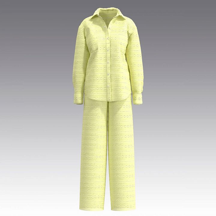 Комплект - рубашка и брюки в стиле легкого оверзайз из батиста с шитьем. Рубашка с длиннымы рукавами на манжетах, отложным рубашечным воротником, застежкой на кнопках. Спереди два кармана. Планка, кокетка и манжеты продублированы вторым слоем ткани. Брюки из батиста с шитьем прямого силуэта. В боковых швах - удобные карманы. Благодаря рисунку и драпировке изделия не просвечивают, но рекомендуется надевать белье телесного цвета или в тон. Широкий размерный ряд.