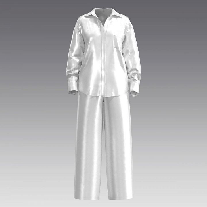 Комплект из рубашки и брюк из натурального шелка. Рубашка свободного силуэта с длинными рукавами на манжетах, с отложным воротником, на застежке до низа на потайных кнопках. Передняя деталь дополнена карманом. Брюки из натурального шелка прямого силуэта. Талия на комфортной, мягкой резинке. Благодаря приятным тактильным ощущениям и роскошному внешнему виду, комплект будет отлично смотреться как на отдыхе, так и на вечеринке. Широкий размерный ряд.