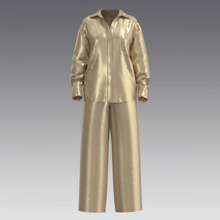 Комплект из рубашки и брюк из натурального шелка. Рубашка свободного силуэта с длинными рукавами на манжетах, с отложным воротником, на застежке до низа на потайных кнопках. Передняя деталь дополнена карманом. Брюки из натурального шелка прямого силуэта. Талия на комфортной, мягкой резинке. Благодаря приятным тактильным ощущениям и роскошному внешнему виду, комплект будет отлично смотреться как на отдыхе, так и на вечеринке. Широкий размерный ряд.