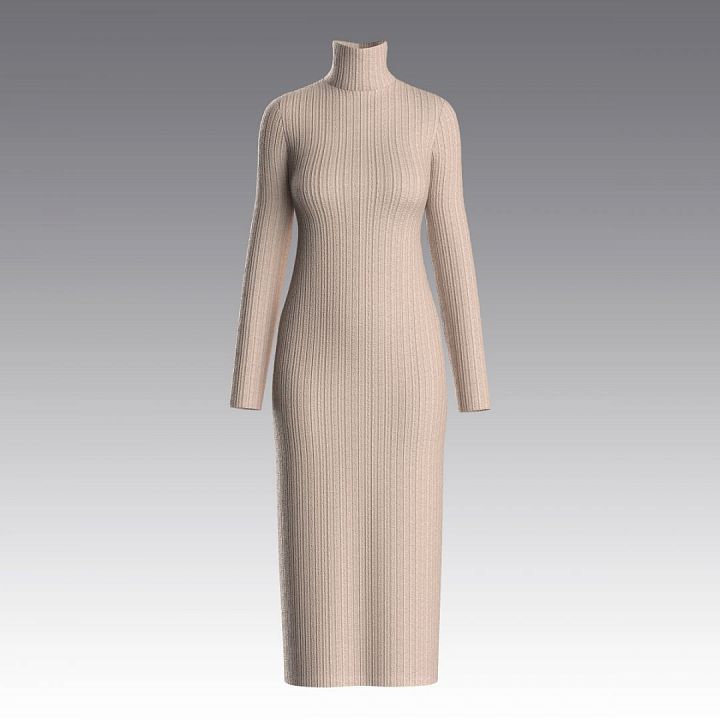 Длинное платье из высококачественного трикотажа в рубчик полуприлегающего силуэта. Рукав длинный, воротник стойка. Широкий размерный ряд.