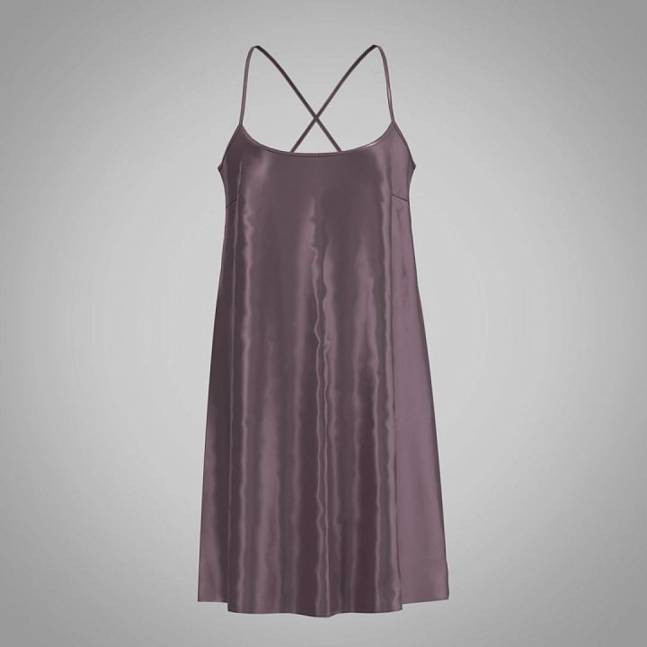 Платье-комбинация из натурального шелка полуприлегающего силуэта длиной выше колен выглядит изысканно и легко «скрадывает» некоторые изъяны фигуры. Тонкие регулирующиеся бретели красиво перекрещиваются на спине. Универсальность и роскошный внешний вид позволяет носить изделие и как ночную сорочку, и как коктельное платье. Широкий размерный ряд.