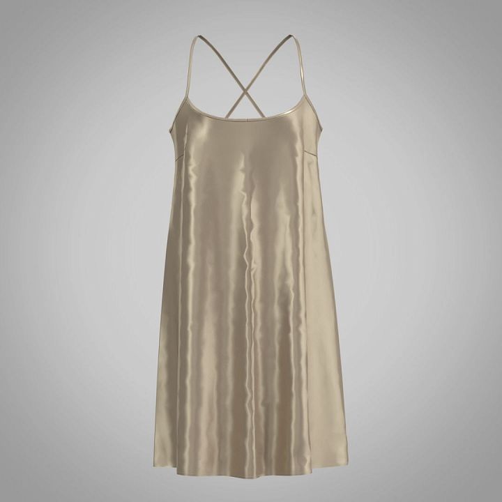 Платье-комбинация из натурального шелка полуприлегающего силуэта длиной выше колен выглядит изысканно и легко «скрадывает» некоторые изъяны фигуры. Тонкие регулирующиеся бретели красиво перекрещиваются на спине. Универсальность и роскошный внешний вид позволяет носить изделие и как ночную сорочку, и как коктельное платье. Широкий размерный ряд.