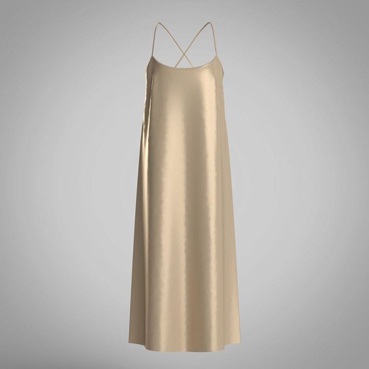 Платье-комбинация из натурального шелка полуприлегающего силуэта длиной до щиколотки выглядит изысканно и легко «скрадывает» некоторые изъяны фигуры. Тонкие регулирующиеся бретели красиво перекрещиваются на спине. Универсальность и роскошный внешний вид позволяет носить изделие и как ночную сорочку, и как коктельное платье. Широкий размерный ряд.