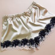 Легкие шорты выполнены из натурального шелка и вышивки. Талия на резинке. В нижней части шорты имеют оригинальную окантовку из вышивки. Люксовая обработка, подразумевающая отсутствие открытых швов. В комплект к шортам можно приобрести топ из натурального шёлка. Широкий размерный ряд.