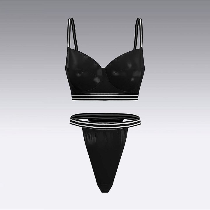 Комплект купальный лиф и купальные трусы-слипы из микрофибры. Купальный бюстгальтер с мягкими чашками на широкой резинке. Верхний угол чашек плавно переходит в бретель. Материал изделия – микрофибра с объемной текстурой поверхности. Изделие не теряет форму при намокании и быстро сохнет. В комплект идут купальные трусы-слипы с классической посадкой выполнены из микрофибры, которая очень хорошо сохнет и обладает высокой устойчивостью к воздействию солнечных лучей и морской воды. Передняя часть стрингов украшена пайетками.Размеры трусов европейские. Широкий размерный ряд.