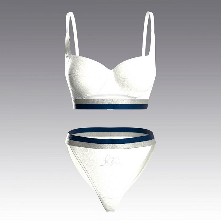 Комплект купальный лиф и купальные трусы-слипы из микрофибры. Купальный бюстгальтер с мягкими чашками на широкой резинке. Верхний угол чашек плавно переходит в бретель. Материал изделия – микрофибра с объемной текстурой поверхности. Изделие не теряет форму при намокании и быстро сохнет. В комплект идут купальные трусы-слипы с классической посадкой выполнены из микрофибры, которая очень хорошо сохнет и обладает высокой устойчивостью к воздействию солнечных лучей и морской воды. Передняя часть стрингов украшена пайетками.Размеры трусов европейские. Широкий размерный ряд.