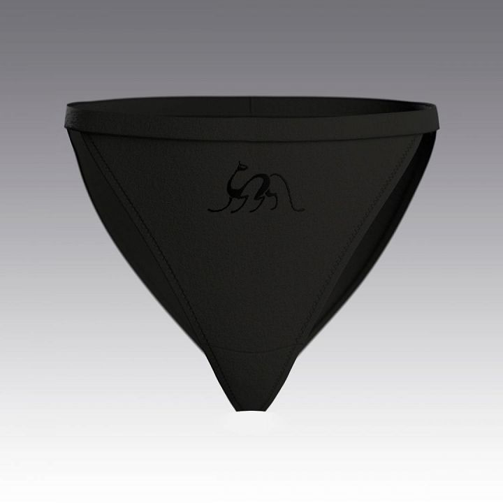 Купальные плавки-бразилиано на широкой резинке, с высокой посадкой из микрофибры, которая  хорошо сохнет и обладает высокой устойчивостью к воздействию солнечных лучей и морской воды. Фирменная вышивка в виде кошки наносится только на изделия, выпущенные лимитированным тиражом, и является зарегистрированным торговым знаком.