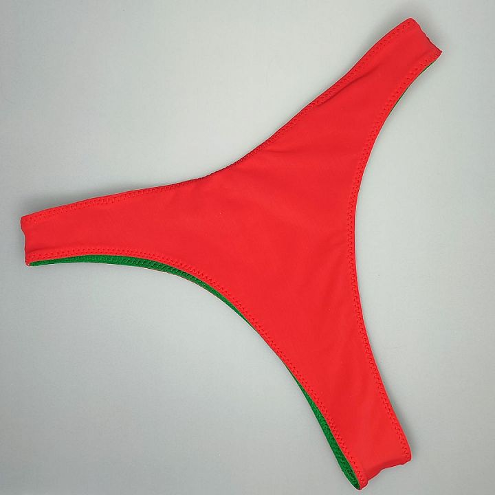 Купальные трусы-стринги из микрофибры, которая хорошо сохнет и обладает высокой устойчивостью к воздействию солнечных лучей и морской воды. Трусы двусторонние. Фирменная вышивка в виде кошки наносится только на изделия, выпущенные лимитированным тиражом, и является зарегистрированным торговым знаком.